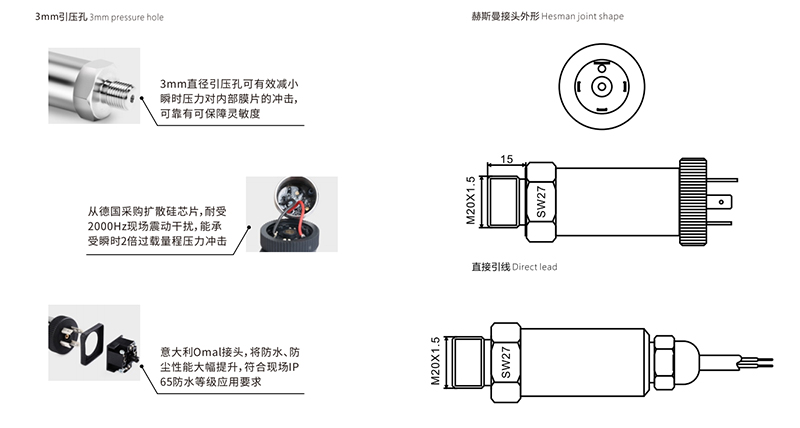 采用了高性能的硅壓阻式壓力充油芯體,具有體積